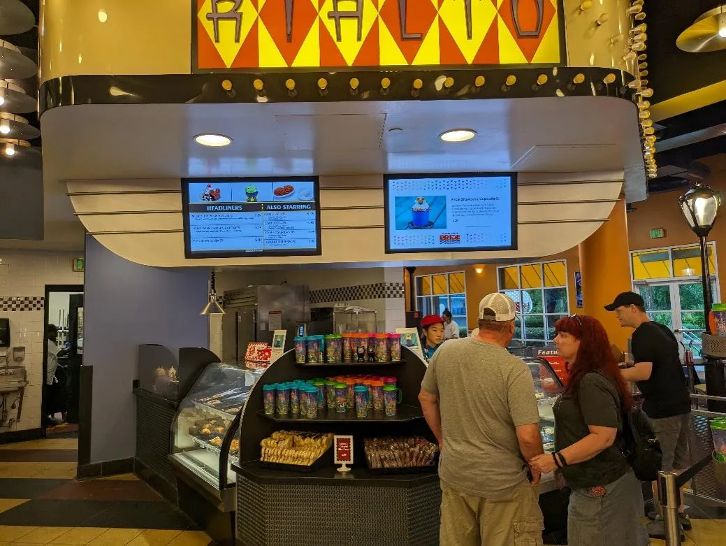 The dining options at the All Star Resorts, to be honest, are not very exciting. Each resort has its own quick service restaurant. All Star Sports has an End Zone Food Court, All Star Music has Intermissions Food Court, and All Star Movies has the World Premiere Food Court. Guests at any of the All Star Resorts can dine at any of the restaurants, and they all have mobile ordering. We always found plenty of seating and the dining areas were clean, for the most part.