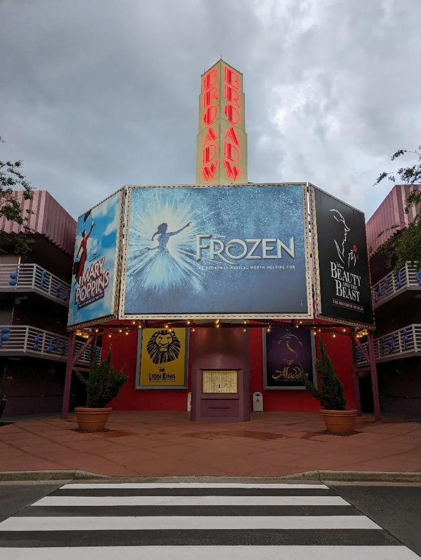The Disney atmosphere at All Stars hits you when you enter the resort grounds. It doesn’t matter which section you stay in, it feels like Disney. The landscaping is beautiful, and the buildings are adorned by giant iconic statues that are impressive in size and design. The statues at All Star Movies directly reference Disney characters, like Woody and Buzz from Toy Story and Pongo and Perdita from 101 Dalmatians. All Star Music has giant musical instruments and a Broadway section with marquees featuring musicals like Aladdin, Lion King, Beauty and the Beast, and Frozen. All Star Sports has statues representing football, tennis, baseball, and basketball, with grounds that resemble playing fields and courts. Although not Disney-specific, these statues still feel like Disney theming.