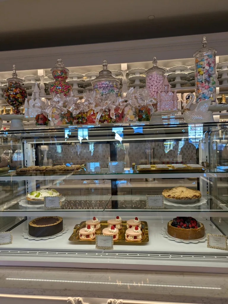 We knew we were going to go to one of the Disney World parks today, but weren’t sure which one. We randomly settled on Hollywood Studios so we could take the Skyliner to Disney’s Riviera Resort to get our favorite coffee, the almond cold brew, at Le Petit Cafe. The weather was gorgeous so after arriving at the Hollywood Studios parking lot we decided to walk to the Skyliner station near the Epcot International Gateway, then take the Skyliner from there to the Riviera. This lucky decision set up our first taste of The Cake Bake Shop on Disney’s Boardwalk.