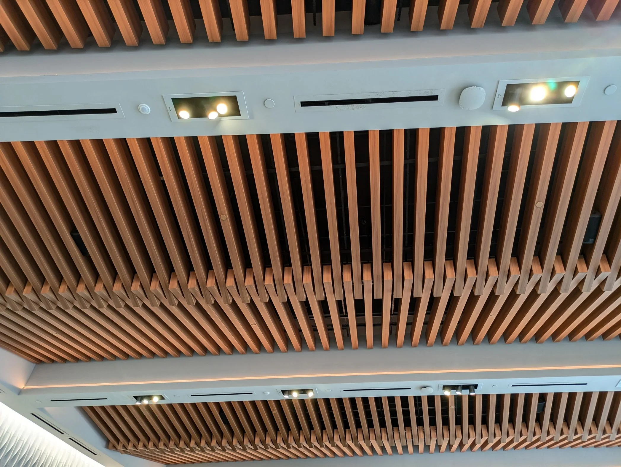 “Doesn’t the ceiling look like the underside of an umbrella? The slats looked like the folding metal support rods of the umbrella canopy.” (I’ve since looked it up and they’re technically called “ribs”.)