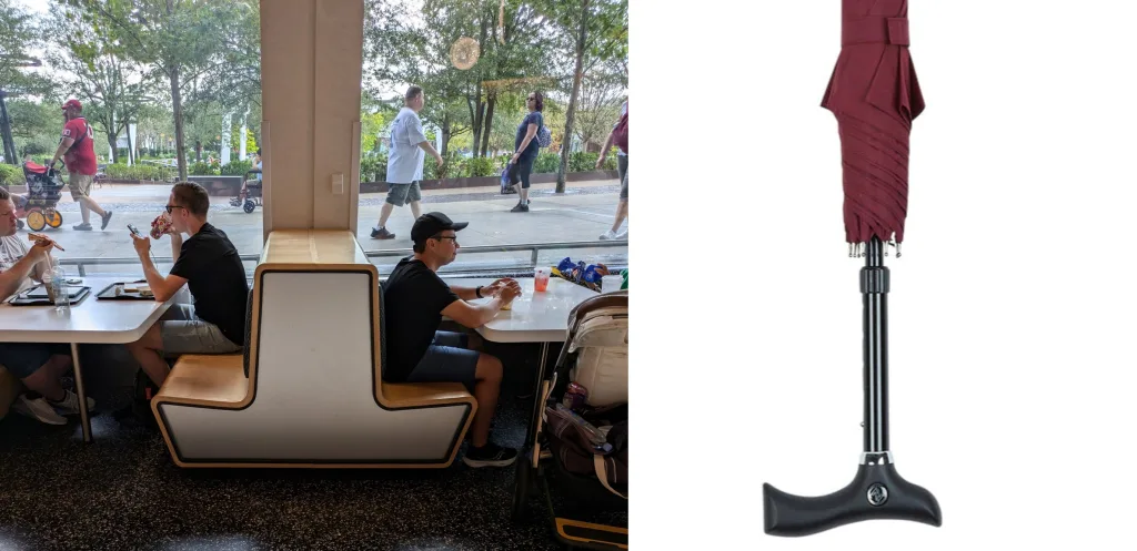 Were the seats shaped like umbrella handles? I stepped back to get a broader view. Maybe?