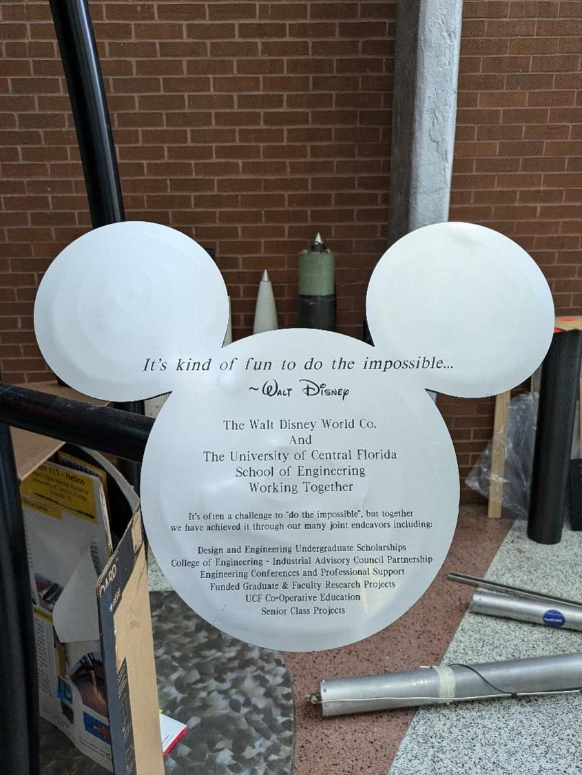 While touring colleges I’m considering applying to, I came across something fascinating at the University of Central Florida (UCF). In the atrium of the Engineering 2 Building, there’s a track and train system display with a Mickey Mouse plaque. This plaque highlights how UCF faculty and students collaborated with Walt Disney World through partnerships and even senior class projects. The track is similar to that of Space Mountain. Intrigued, I decided to dig deeper into their involvement.