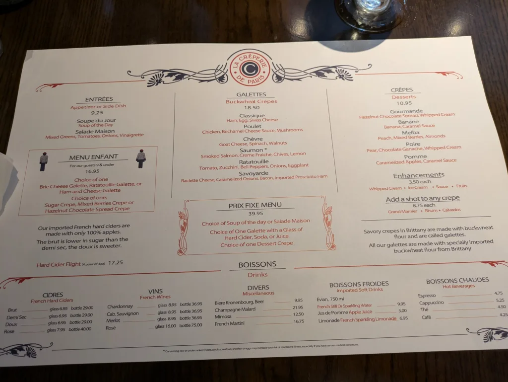 Overall, we had a wonderful first experience at La Crêperie de Paris. Sharing two crepes made for a great light lunch option. For dinner, we’d likely each get an entree, and share a dessert. We can’t wait to go back to try more delicious crepes and a hard cider or two!