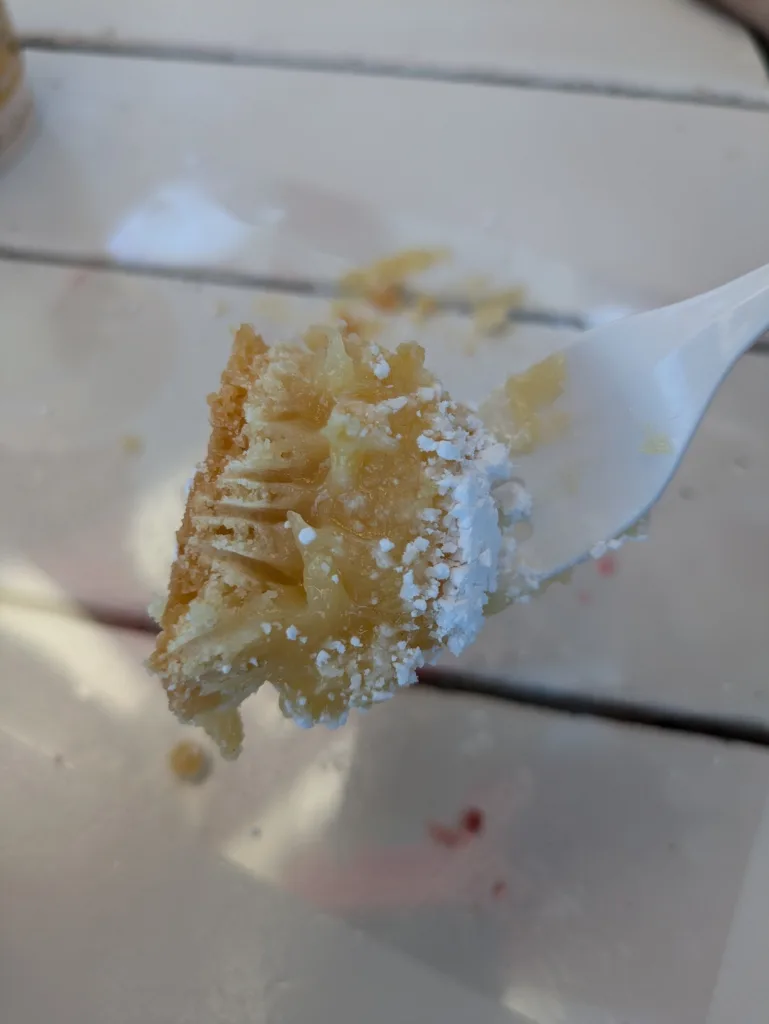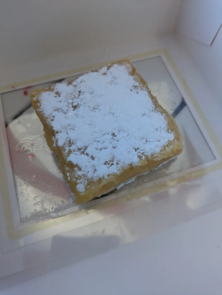 We had a hard time deciding what to get. We did know to try the Raspberry Champagne Cake slice since that was the most recommended item by everyone in the store. We also took another recommendation at the counter and got a slice of the Key Lime Pie. Mr. Jotter loves a Lemon Bar so we added one of those too. For drinks we went with the London Fog Latte and an iced Coconut Latte. The price of all of these including tax, but before tip, was around $72!! Yes, that’s not a typo. But was it worth it…
