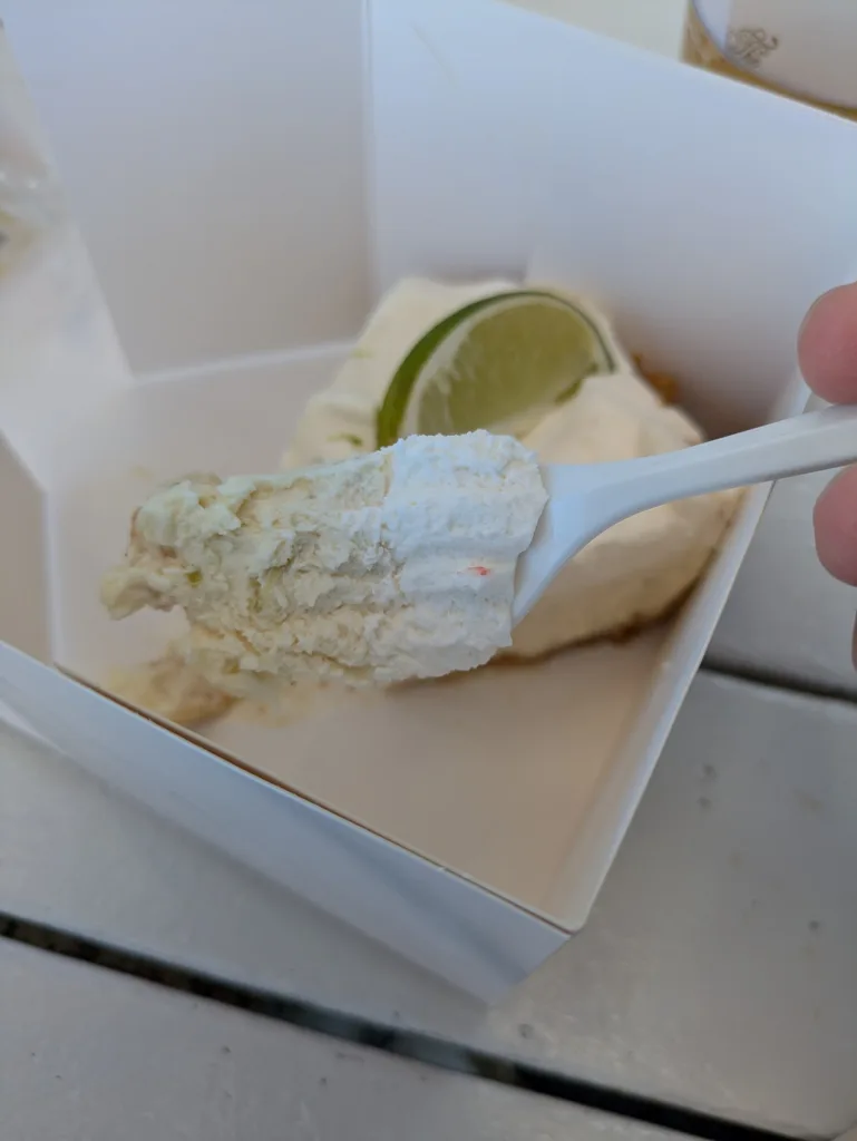 The Key Lime Pie ($14.99) was another winner! Described as “Full of fresh lime zest and freshly squeezed lime juice, our custard is filled into a crust of crushed graham crackers, European butter, and sugar. Topped with freshly whipped cream, lime zest, and fresh lime wedges.” This was not your typical Florida key lime pie. The person who recommended it said it was more of a mousse texture than a typical pie filling, and they were right. The pie was like eating Key Lime whipped cream, but in the best possible way. It was very soft and light in texture, and just surprising if you’re used to a denser custard pie base. You could see the bits of lime zest, but couldn’t really feel them as you ate this fluffy cloud of a pie. And despite the visual of a fresh lime wedge on top, the pie was not tart, just more smooth and sweet with creamy lime flavor. (We did not eat or use the lime wedge.) We would recommend this if you want a pleasantly, neat take on Key Lime Pie.